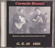 Carmelo Rizzuti was born in 1889 in Buenos Aires. He began to play the guitar in 1895. He joined the Academia de Guitarra "Prat" in 1912. Domingo Prat was the first student of Francisco Tarrega to arrive in Buenos Aires in 1908. With the perfected style Carmelo made a tour in 1917 of the interior cities of Argentina with another student of Francisco Tarrega, Hilarion Leloup-director of the Academia de Guitarra "Tarrega". The cover photo is from that period of time. Maestro Rizzuti taught for over 50 years, having began in 1911.