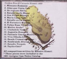 All the compositions are written by Maestro Rizzuti. Songs #s 10, 11, 14 16 and 18 were published in the 1920's and were included in the 1931 Antigua Casa Nuñez catalog.