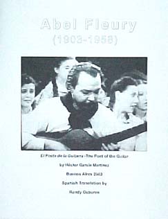 Abel Fleury's Argentine folkmusic on the guitar was splendid. The famous Argentine guitarist and singer, Atahualpa Yupanqui, said of Fleury's tone: "No one has outdone his tone yet." Abel Fleury owned two guitars built by Francisco Simplicio. One of these can be seen in this book: La Chitarra di Liuteria.